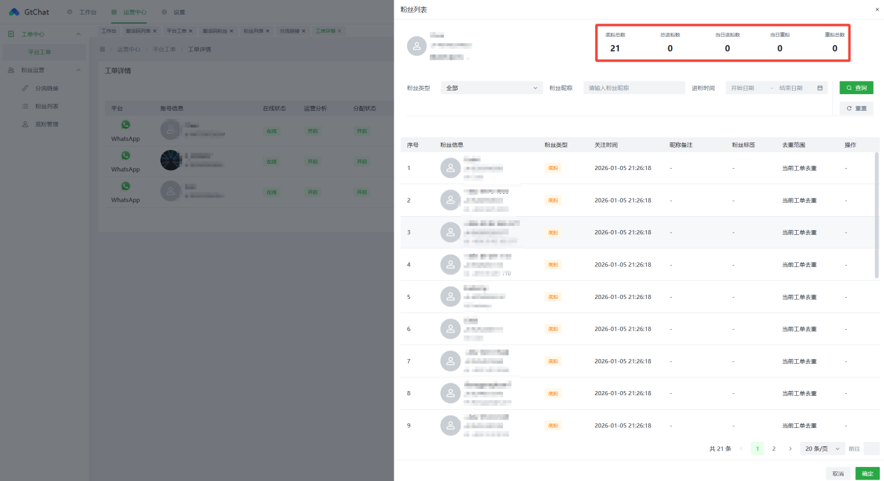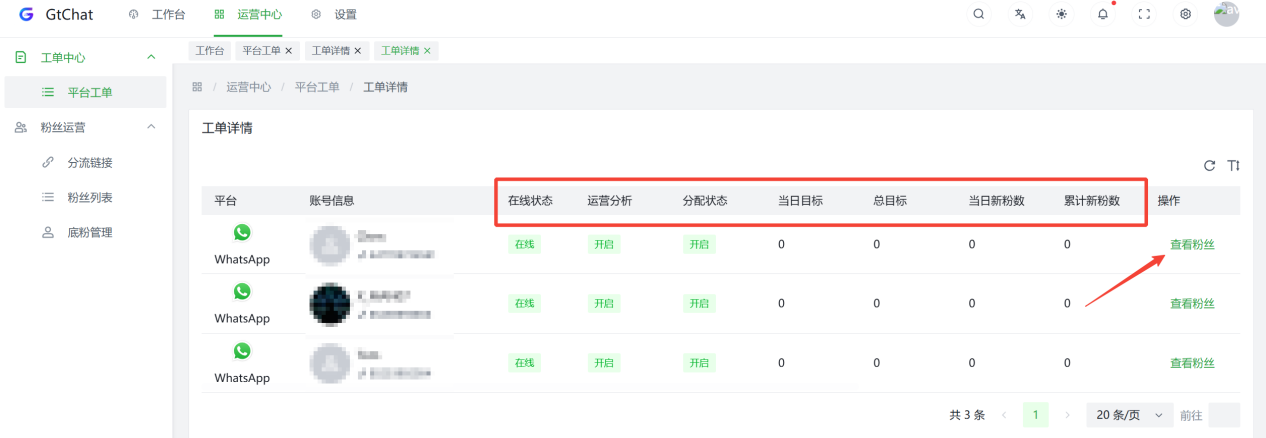 您可以在"工单详情"中找到这个社交账号及当前社交账号进粉明细;