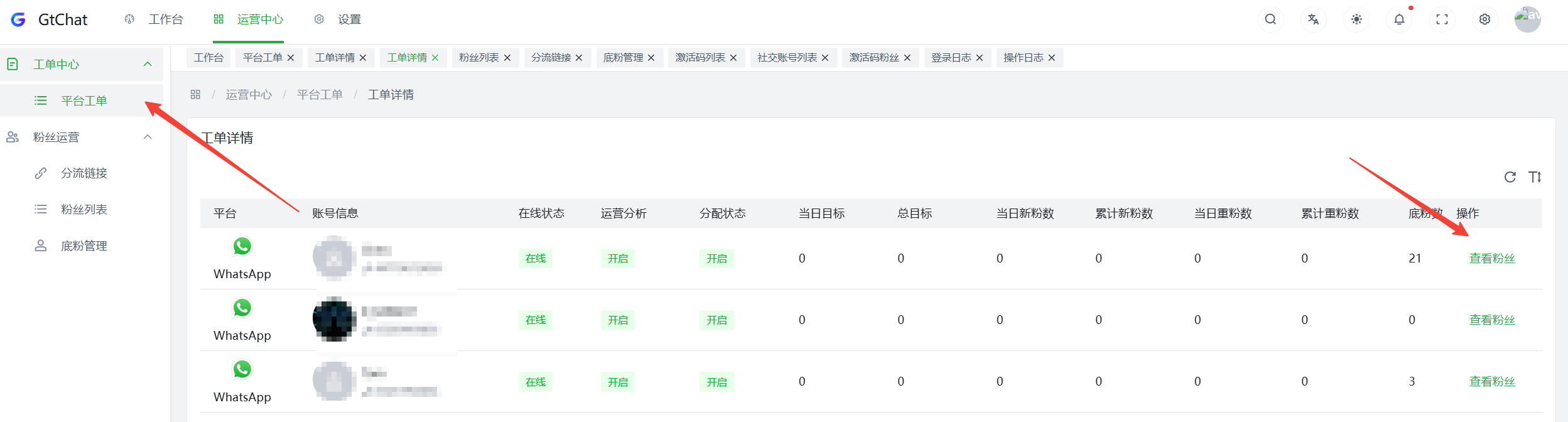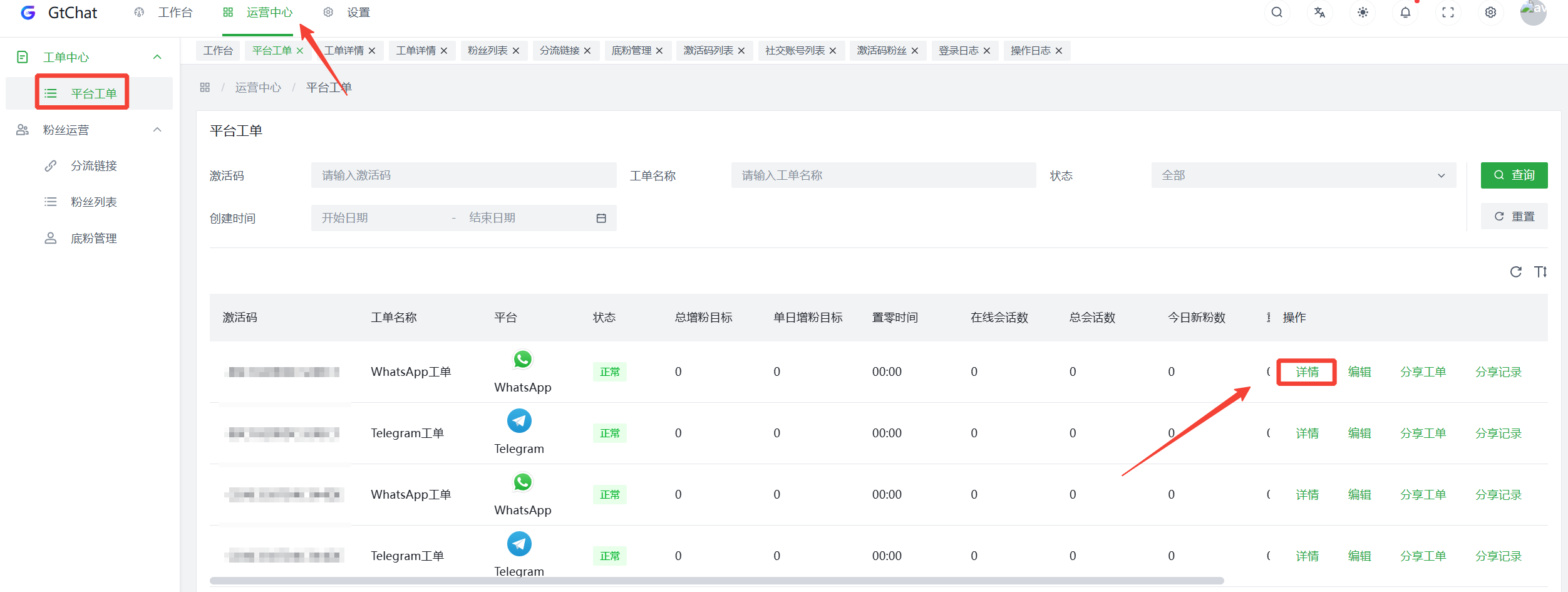 流量主操作:打开【 工单中心 】→【 平台工单 】,找到对应激活码【 工单名称 】→ 点击【 分享工单】→ 生成并分享工单链接 广告主操作: 打开工单数据报表的链接 → 查看账号的线索数