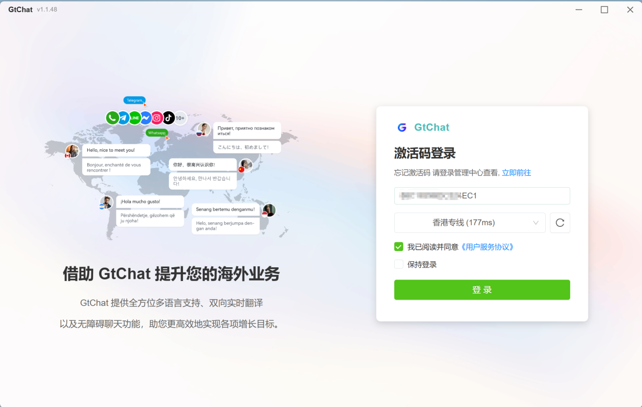 员工安装桌面端(下载安装),然后通过老板给的激活码,登录需要引流的账号,以TG账号为例。
